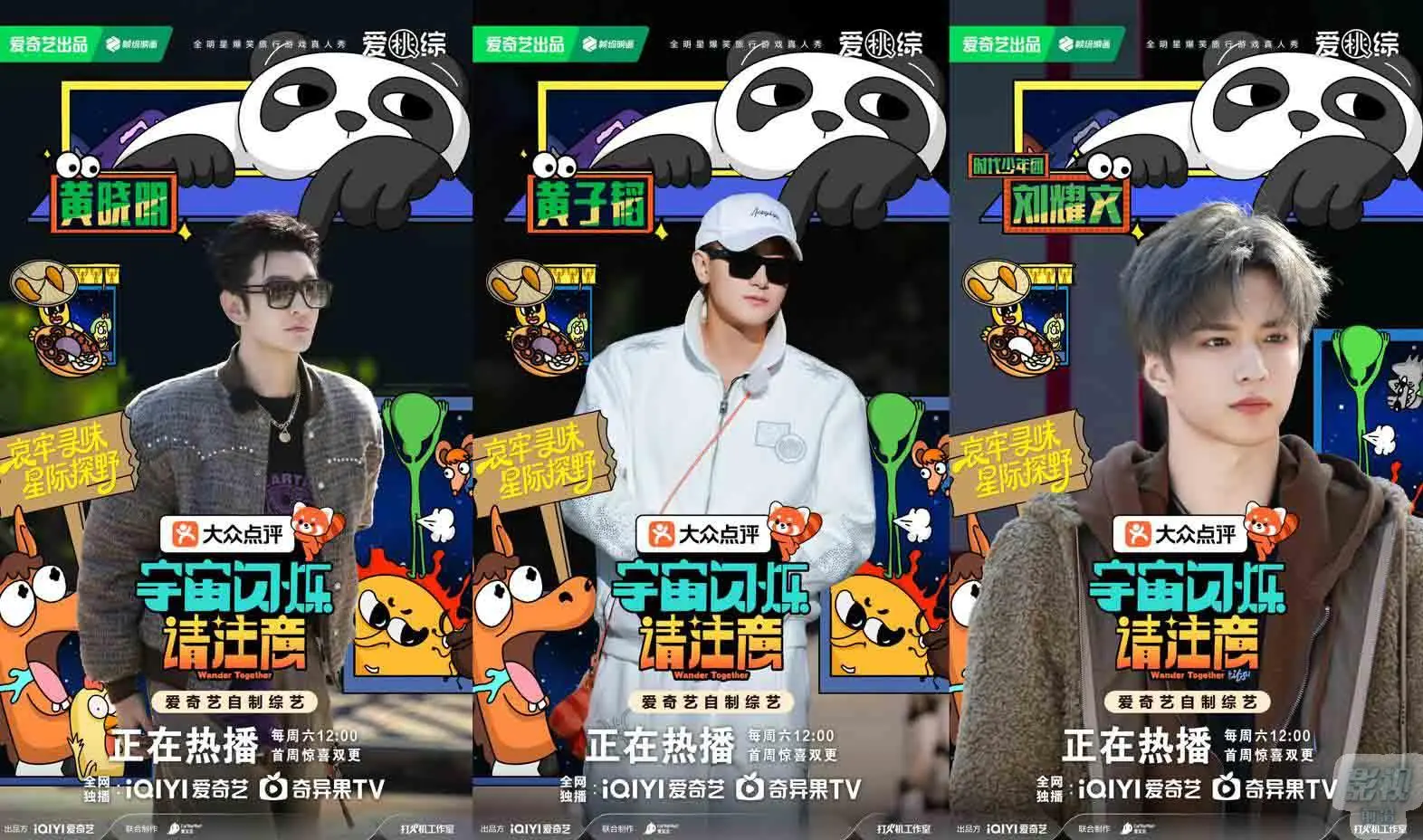 由大众点评独家冠名、爱奇艺出品的全明星爆笑旅行游戏真人秀《宇宙闪烁请注意》于12月27日爆笑开播。节目集结黄晓明、黄子韬、时代少年团-刘耀文、邵子恒、王鹤棣、于洋(按姓名首字母排序)组成“宇宙爆闪团”,开启了一场集“抽象疯癫”与“自然治愈”于一体的奇幻旅程。作为一档全新综艺,节目未播先火,开播前预约量高达160万;首播24小时爱奇艺热度值火速突破8000,微博热度值破8000万,登顶综艺榜TOP1。并且产生了众多“疯神”名场面,这档年末解压“癫综”用最纯粹的快乐,回馈了网友的高度期待。