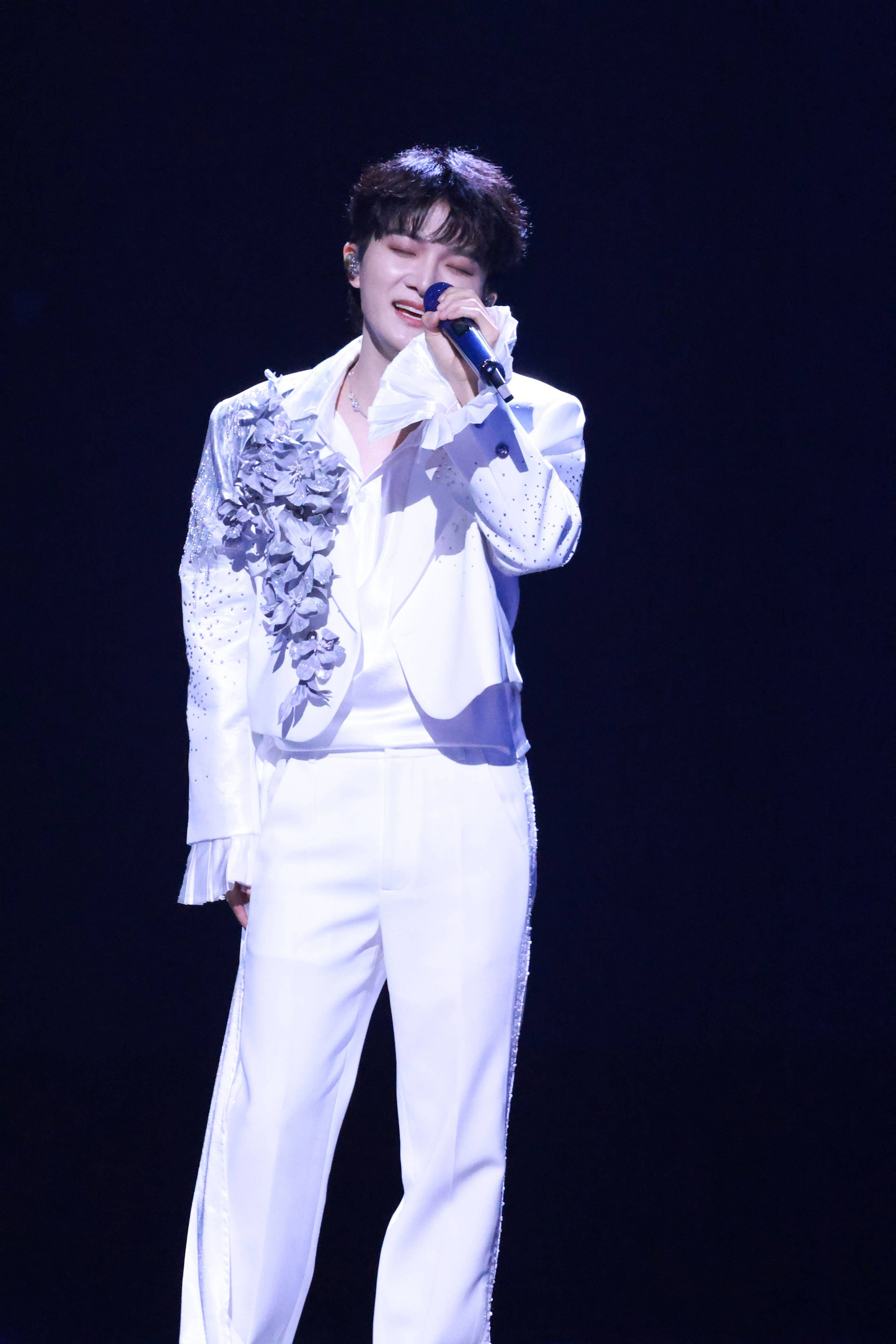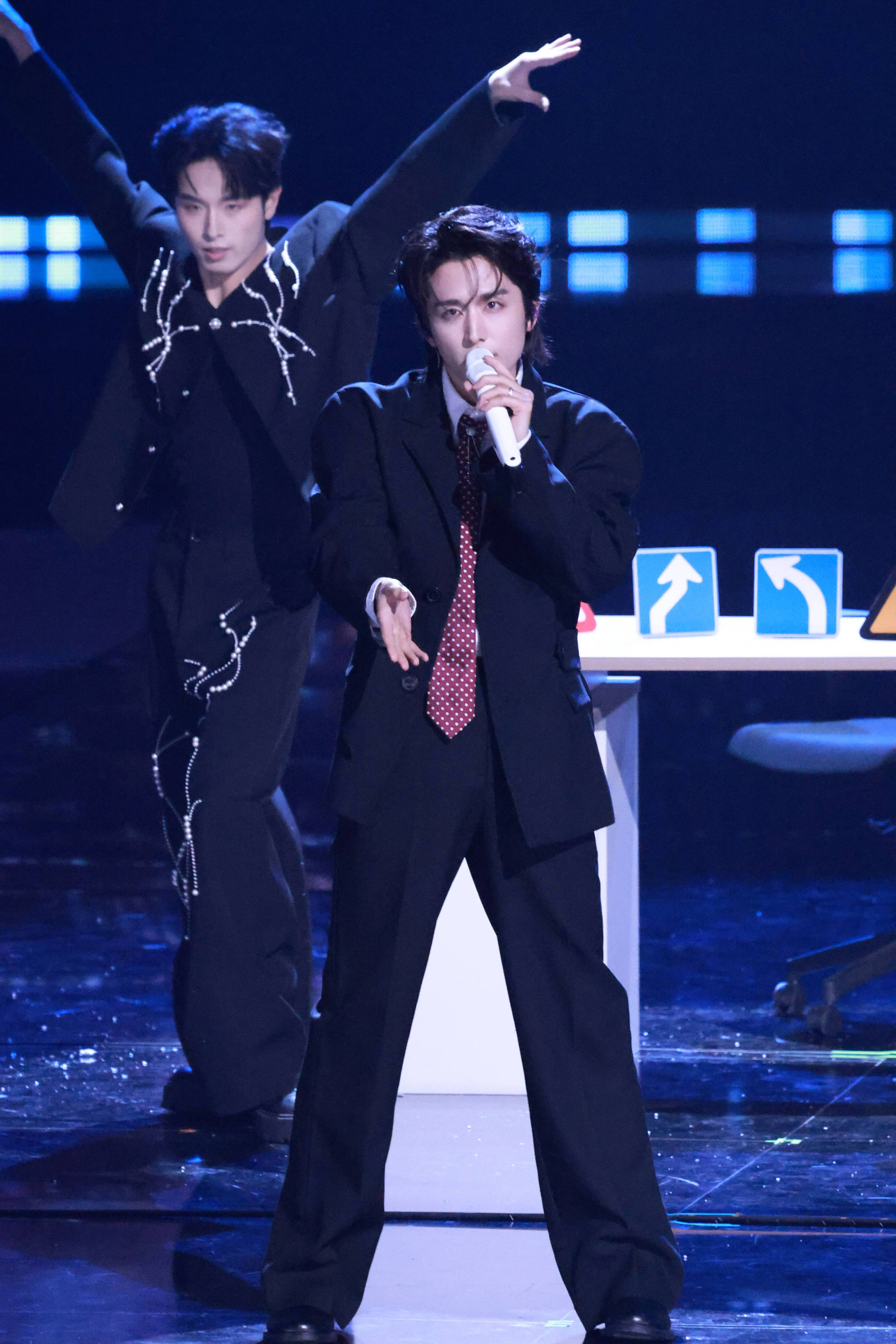 周深一袭白色点缀花朵装饰西装压轴亮相,一连演唱了《时间啊》《好运来》《好好生活就是美好生活》,音乐精灵妥妥拿捏不同曲风,让台下观众浑身细胞被叫醒。在后台采访中,周深比心、清唱、跳舞,饭撒不断,还给大家送上新年祝福,并分享了对“爱你老己”的理解。