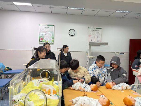 在护理实训室,整洁规范的模拟病房、种类齐全的护理训练设备让孩子们好奇不已,在老师的细致讲解下,大家对基础护理技能与医护工作的严谨性有了直观认知,对 “白衣天使” 的职业日常也多了一份理解与敬意。